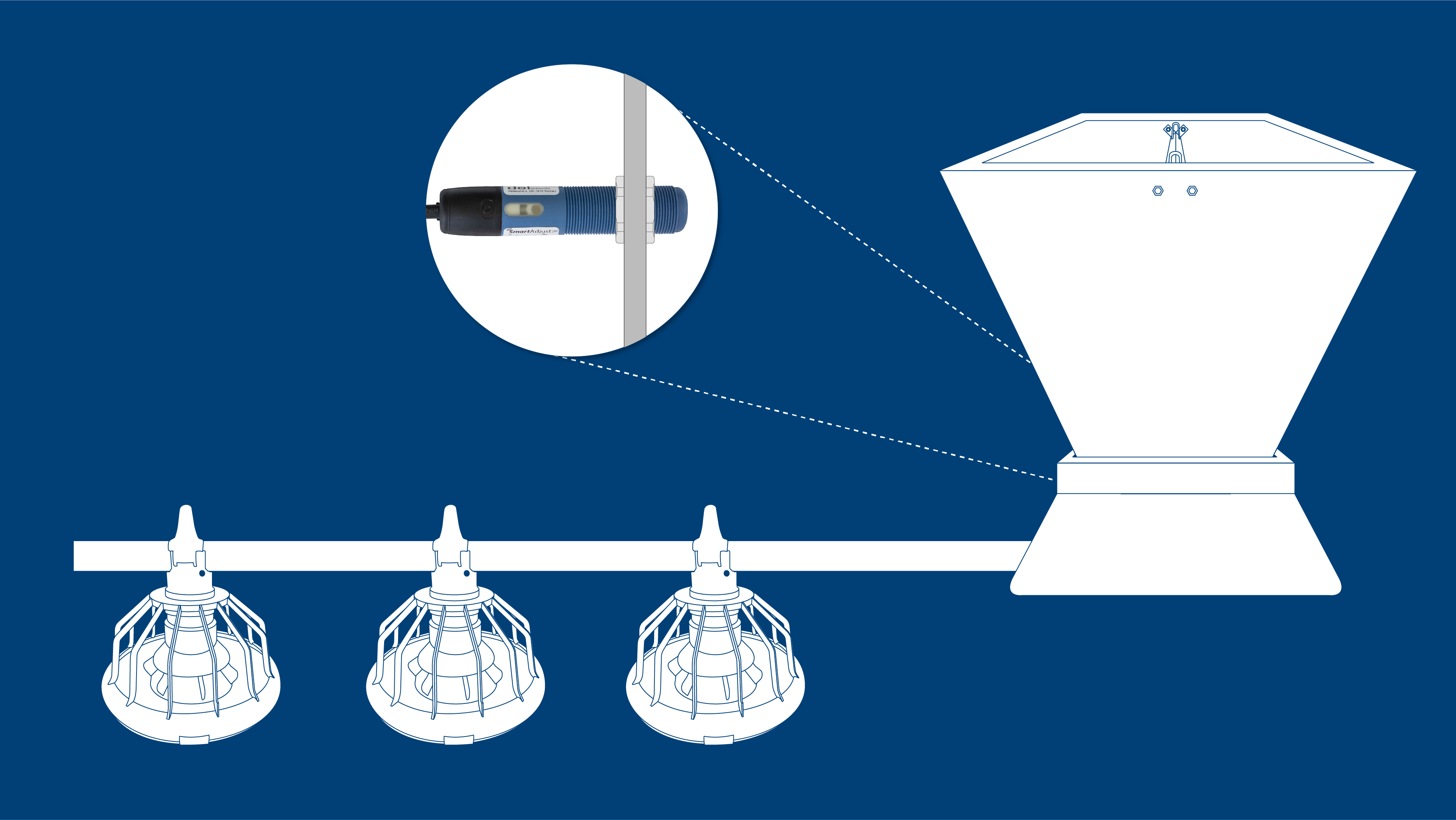 Due to the mechanical design of DOL 26, the sensor is ideal for inclusion in small applications with limited space such as inside feed pans in poultry farms. In this way the sensor is kept away from the reach of the animals.